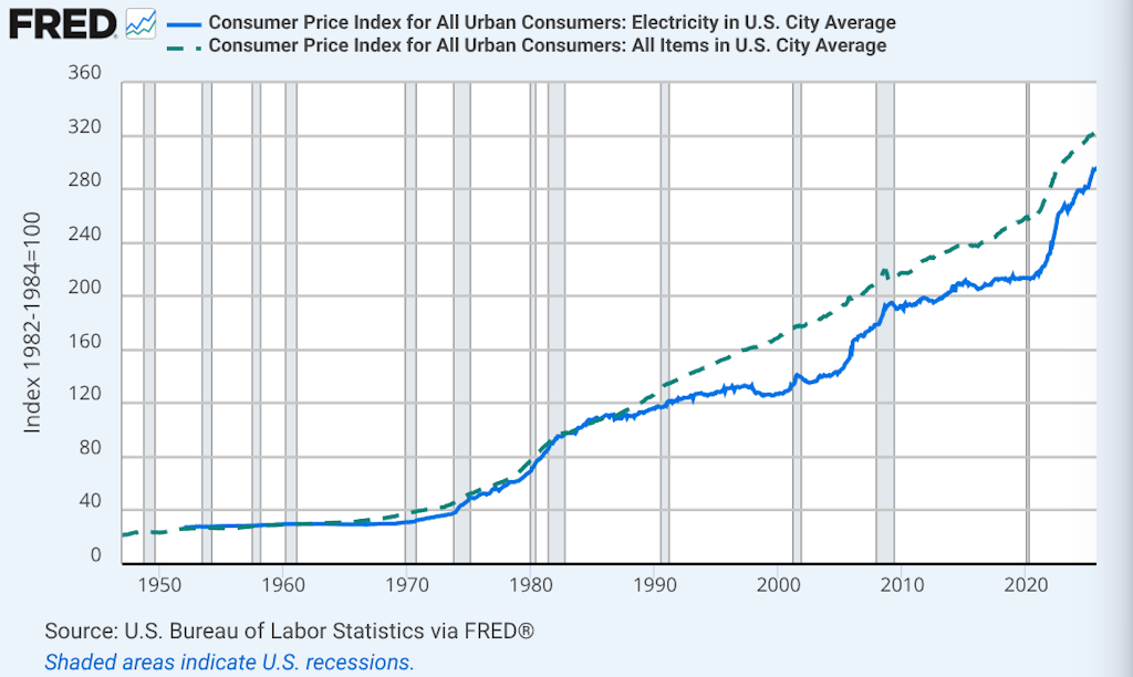 As pessoas temem que os centros de dados aumentem o custo da electricidade, mas, pelo que foi dito acima, esse não tem sido o caso até agora – os preços da electricidade têm subido mais lentamente do que a inflação durante anos. Há também evidência que a demanda do data center pode até mais baixo preços da electricidade — provavelmente porque a maior procura permite que os custos fixos sejam repartidos por mais clientes.