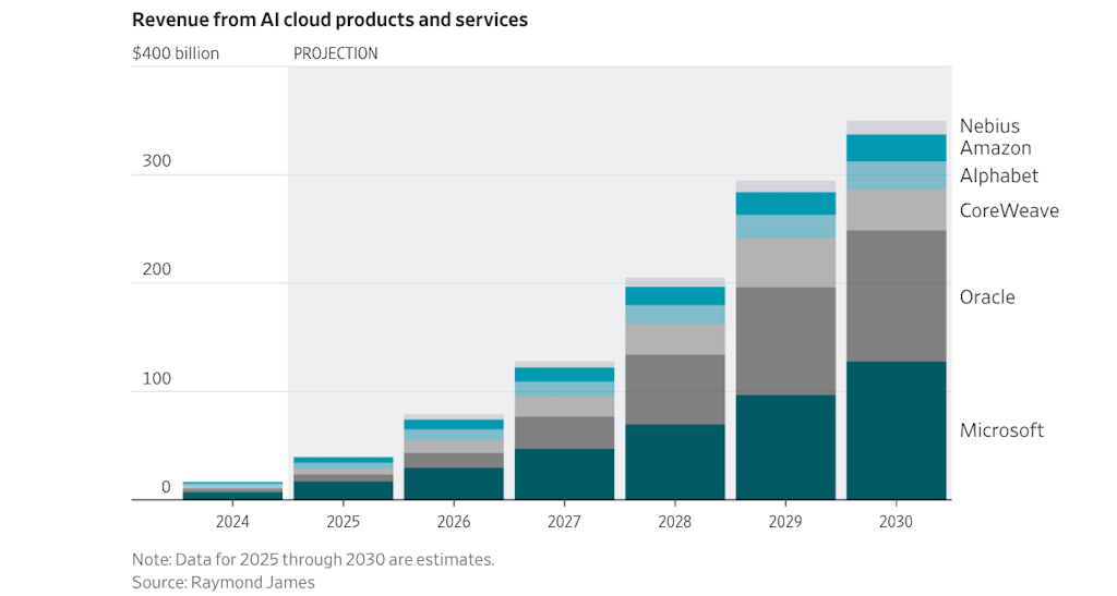 Se os data centers forem construídos, usaremos todos eles? JPMorgan projetos que “os produtos de IA teriam de criar 650 mil milhões de dólares adicionais por ano, indefinidamente, para dar aos investidores um retorno anual razoável de 10%” sobre os seus investimentos em IA. As previsões de Raymond James acima sugerem que poderemos ficar muito aquém disso.