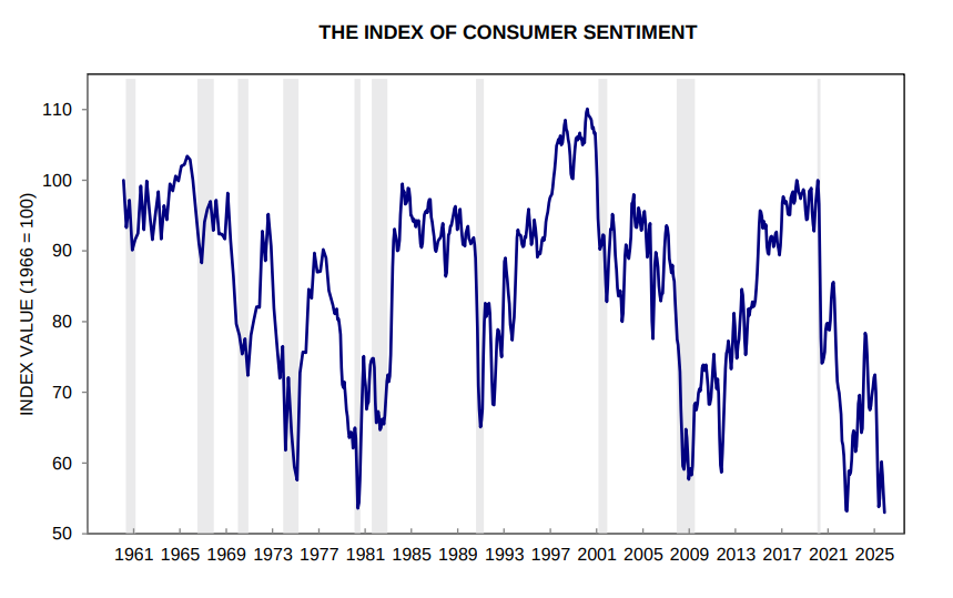 A pesquisa de novembro sobre o sentimento do consumidor realizada pela Universidade de Michigan apresentou o valor mais baixo já registrado, desde 1960. E a bolha ainda nem estourou!