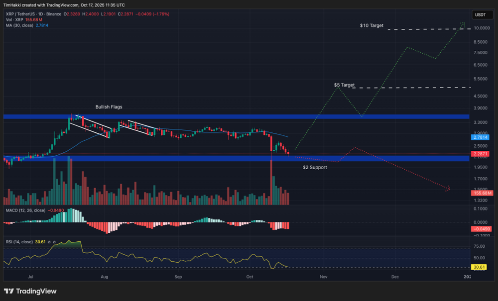 A sazonalidade favorável de outubro, as possíveis aprovações de ETF, a futura clareza regulatória dos EUA e as novas parcerias Ripple poderiam reverter a atual desaceleração do XRP, levando-o para a marca de US$ 10.