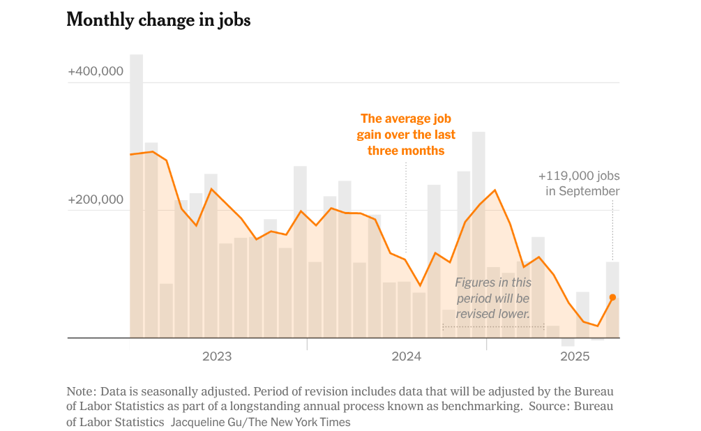 Os dados sobre empregos atrasados mostraram os EUA com um ganho surpreendente de 119.000 empregos em Setembro.