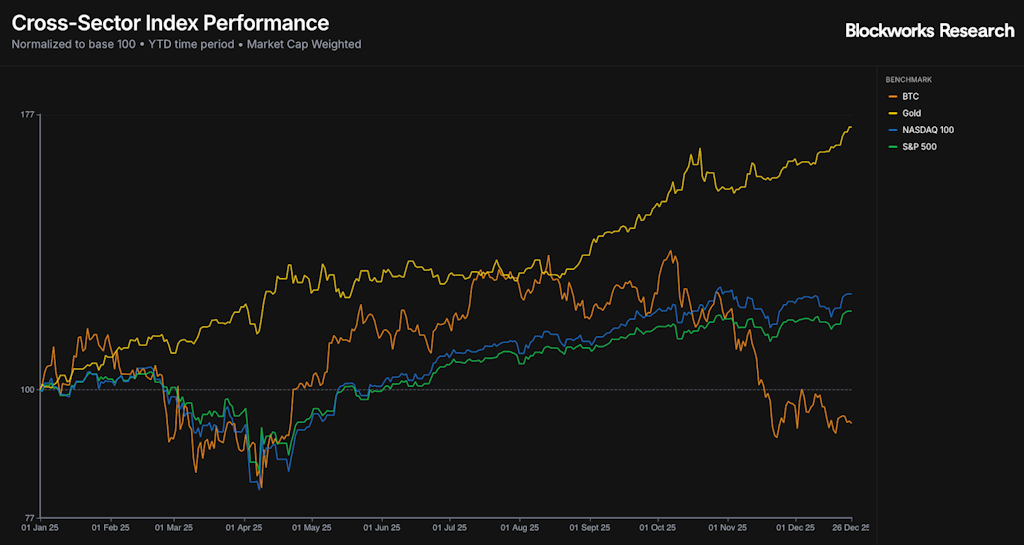 Tem sido uma semana lenta com o Natal e os mercados tradicionais estiveram fechados ontem. O BTC caiu ligeiramente (-0,4%) em volumes moderados em geral, refletindo a calmaria mais ampla do feriado. Com a ação dos preços silenciosa, é um bom momento para dar um passo atrás, refletir sobre 2025 e pensar no posicionamento para 2026.
