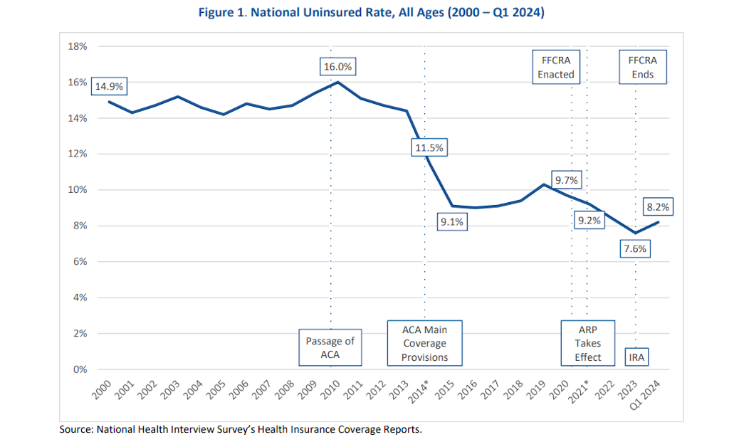 8,2% dos americanos não tinham seguro em 2024, abaixo dos 16% em 2010.