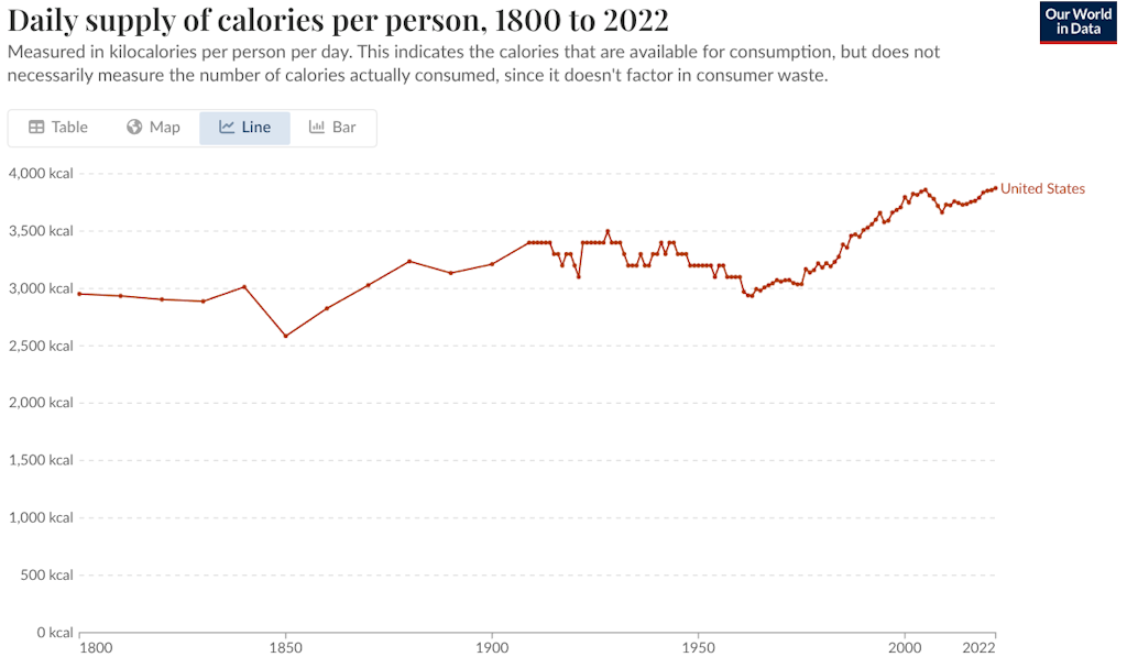 Os americanos consomem cerca de 3.800 calorias por dia – 15% mais do que consumimos em 1985 e cerca de 50% mais do que deveríamos.