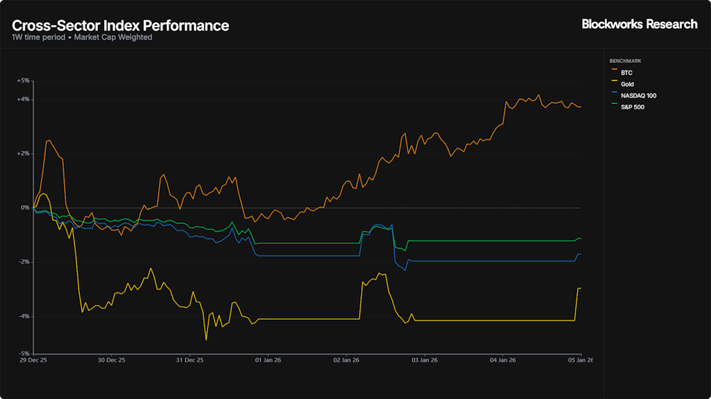 Os mercados abriram o ano com mudanças subtis mas importantes. O BTC superou o desempenho das ações e do ouro, as narrativas criptográficas de beta mais elevado foram despertadas e o posicionamento dos derivativos apontou para uma reconstrução cuidadosa do risco, em vez de excesso. Na nota de hoje, analisamos o desempenho do índice, o que os derivados de ETH estão sinalizando sob a superfície e o caso crescente dos criminosos de ações como um produto orientado para o varejo que se aproxima de um ponto de inflexão.